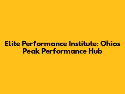 Elite Performance Institute: Ohio's Peak Performance Hub