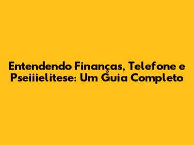 Entendendo Finanças, Telefone E Pseiiielitese: Um Guia Completo