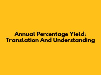 Annual Percentage Yield: Translation And Understanding