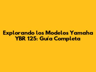 Explorando Los Modelos Yamaha YBR 125: Guía Completa