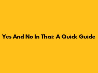 Yes And No In Thai: A Quick Guide