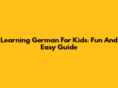 Learning German For Kids: Fun And Easy Guide