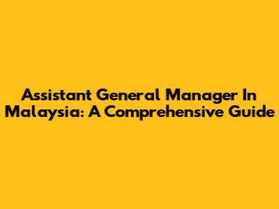Assistant General Manager In Malaysia: A Comprehensive Guide