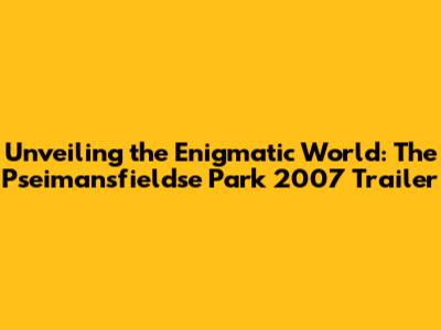 Unveiling the Enigmatic World: The Pseimansfieldse Park 2007 Trailer