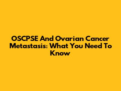 OSCPSE And Ovarian Cancer Metastasis: What You Need To Know