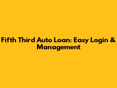 Fifth Third Auto Loan: Easy Login & Management