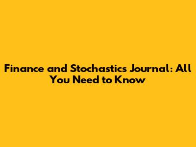 Finance And Stochastics Journal: All You Need To Know