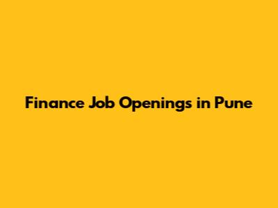 Finance Job Openings In Pune