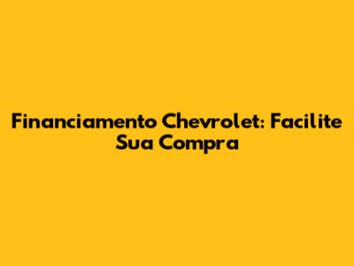 Financiamento Chevrolet: Facilite Sua Compra