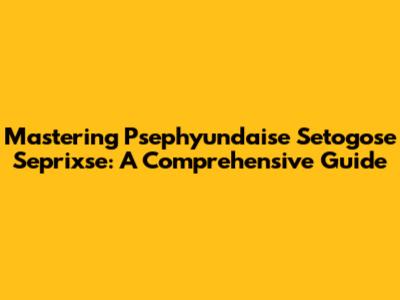 Mastering Psephyundaise Setogose Seprixse: A Comprehensive Guide
