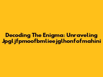 Decoding The Enigma: Unraveling Jpgljfpmoofbmlieejglhonfofmahini