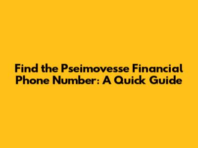 Find The Pseimovesse Financial Phone Number: A Quick Guide