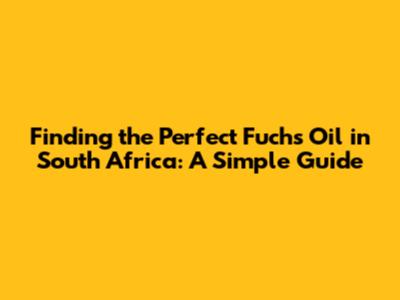 Find The Right Fuchs Oil In South Africa: A Simple Guide