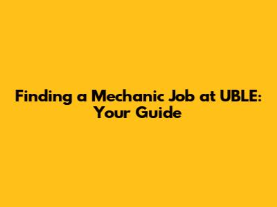 Finding A Mechanic Job At UBLE: Your Guide