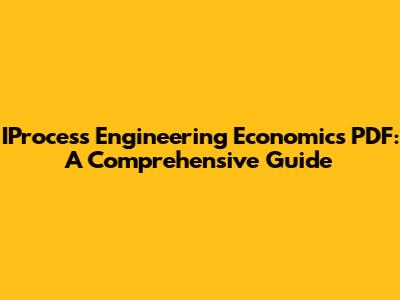 IProcess Engineering Economics PDF: A Comprehensive Guide
