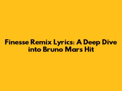 Hey music lovers! Ever found yourself vibing to a song and just feeling it, but not quite grasping the full meaning behind the lyrics? Well, today, we're diving deep into the Finesse Remix lyrics by the one and only Bruno Mars. This track isn't just a catchy tune; it's a whole vibe, a fusion of smooth vocals, groovy beats, and a lyrical narrative that's worth exploring. Get ready, guys, because we're about to dissect the Finesse Remix lyrics, uncovering the story they tell and the emotions they evoke. Let's break down this hit, shall we?