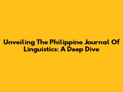 Unveiling The Philippine Journal Of Linguistics: A Deep Dive