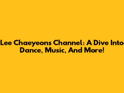 Lee Chaeyeon's Channel: A Dive Into Dance, Music, And More!