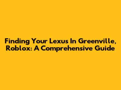 Finding Your Lexus In Greenville, Roblox: A Comprehensive Guide