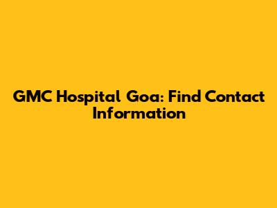 GMC Hospital Goa: Find Contact Information