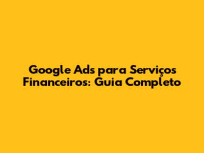 Google Ads Para Serviços Financeiros: Guia Completo