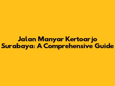 Jalan Manyar Kertoarjo Surabaya: A Comprehensive Guide