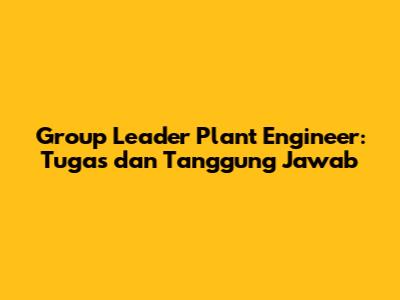 Sebagai seorang Group Leader Plant Engineer, ada banyak tugas dan tanggung jawab yang harus diemban. Berikut ini adalah beberapa di antaranya: