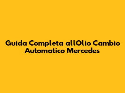 Guida Completa All'Olio Cambio Automatico Mercedes