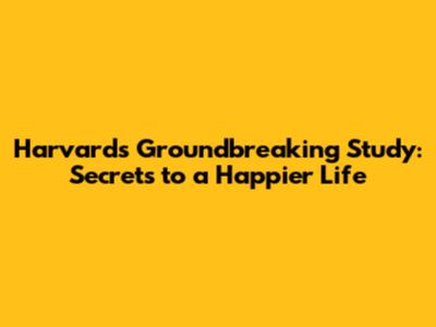Harvard's Groundbreaking Study: Secrets To A Happier Life