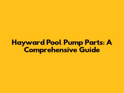 Hayward Pool Pump Parts: A Comprehensive Guide