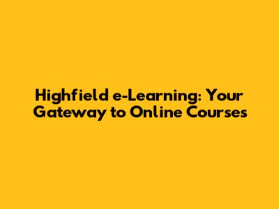Highfield E-Learning: Your Gateway To Online Courses