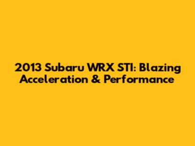 2013 Subaru WRX STI: Blazing Acceleration & Performance