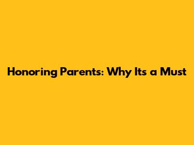Honoring Parents: Why It's A Must