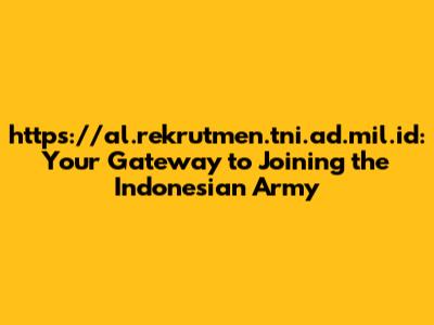Hey guys! Are you dreaming of a career filled with honor, duty, and service to your nation? If you're nodding your head, then you absolutely need to know about https://al.rekrutmen.tni.ad.mil.id, the official online portal for Indonesian Army (TNI AD) recruitment. Think of it as your one-stop-shop for everything you need to know to kickstart your journey toward becoming a soldier. This isn't just some website; it's your front-row seat to understanding the requirements, procedures, and opportunities within the TNI AD. Forget sifting through endless forums and outdated information – this site is the real deal, providing you with accurate and timely updates directly from the source. So, buckle up and get ready to explore how this website can transform your aspirations into reality. We will dive deep into what makes this platform so important, guiding you through every nook and cranny to ensure you're well-prepared to take the plunge. We will explore its resources, demystify the application process, and give you insider tips to help you stand out from the crowd. Becoming a soldier is a big decision and this portal is designed to support you every step of the way. This journey starts with knowledge and preparation, and this website is your ultimate tool for gathering both. Get ready to make that dream a reality!