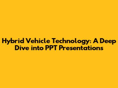 Hey guys! Today, we're diving deep into the fascinating world of hybrid vehicle technology, focusing specifically on what you might find in a PowerPoint presentation (PPT) on the subject. Whether you're a student, an engineer, or just a car enthusiast, understanding the ins and outs of hybrid tech is becoming increasingly important. So, buckle up and let's explore what makes these vehicles tick!