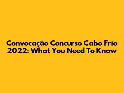 Convocação Concurso Cabo Frio 2022: What You Need To Know