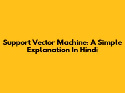 Support Vector Machine: A Simple Explanation In Hindi