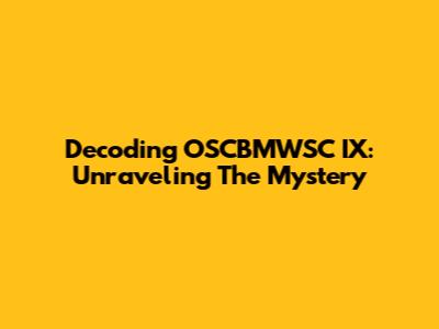 Decoding OSCBMWSC IX: Unraveling The Mystery