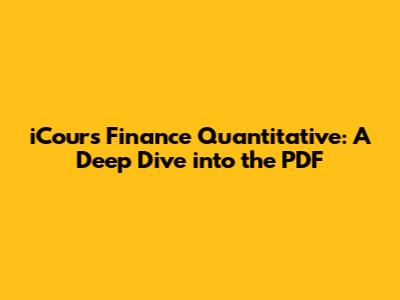 ICours Finance Quantitative: Your Comprehensive PDF Guide