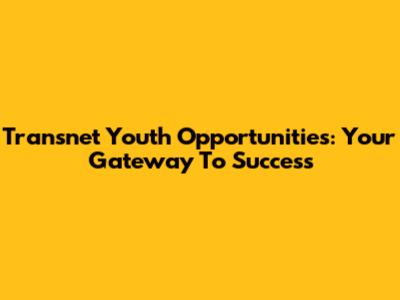 Transnet Youth Opportunities: Your Gateway To Success