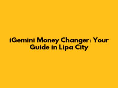 Are you looking for the best place to exchange your currency in Lipa City? Look no further! In this article, we will explore everything you need to know about iGemini Money Changer in Lipa City. Whether you're a tourist needing to convert your home currency or a local resident dealing with international transactions, understanding your options is crucial. We'll cover their services, locations, rates, and why they might be the right choice for your currency exchange needs. So, let’s dive in and get you acquainted with iGemini Money Changer in Lipa City!