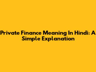 Private Finance Meaning In Hindi: A Simple Explanation