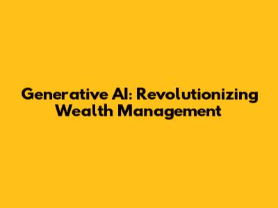Generative AI: Revolutionizing Wealth Management