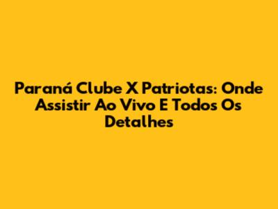 Paraná Clube X Patriotas: Onde Assistir Ao Vivo E Todos Os Detalhes