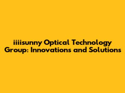 Iiiisunny Optical Technology: Innovations & Solutions