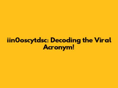 Iin0oscytdsc: Decoding The Viral Acronym!