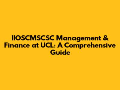 IIOSCMSCSC Management & Finance At UCL: A Comprehensive Guide