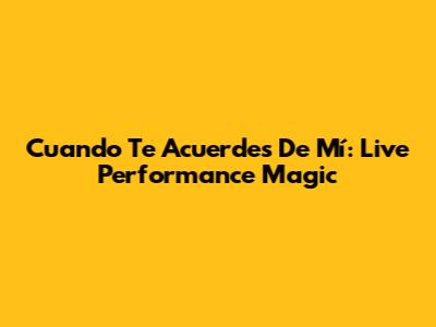 Cuando Te Acuerdes De Mí: Live Performance Magic