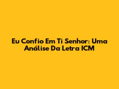 Eu Confio Em Ti Senhor: Uma Análise Da Letra ICM