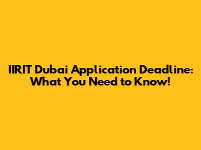 IIRIT Dubai Application Deadline: What You Need to Know!